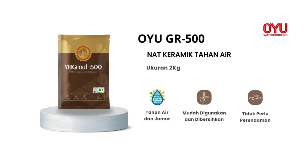 Sebagai pelengkap sistem bahan waterproofing kolam renang, gunakan Sealing & Bonding OYU GR-500 Nat Keramik Tahan Air.
