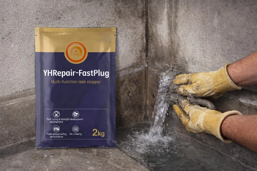 - Bahan Utama: OYU-FASTPLUG Mortar untuk Tambal Kebocoran.
